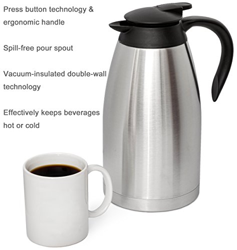 68 Oz (2 Liter) Thermal Coffee Carafe | German-Designed, Stainless Steel Insulated Double Wall | BPA-Free Vacuum Thermos…