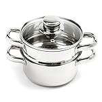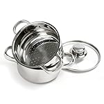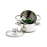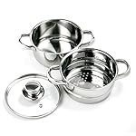 3 piece set includes base pot, steamer and vented, tempered glass lid. Perfect size for steaming small portions of vegetables, seafood or meat dishes. Steaming retains vitamins and minerals, making it a healthier way to cook. Convenient small size promotes faster boiling, ideal for preparing small portions quickly. Use without steamer to cook pasta, heat soups, sauces, milk, boil eggs & water. The TRI-PLY ENCAPSULATED base gives you uniform cooking, no hot spots and quick, efficient heat conductivity. Stainless steel construction with mirror finish. Hand washing recommended.