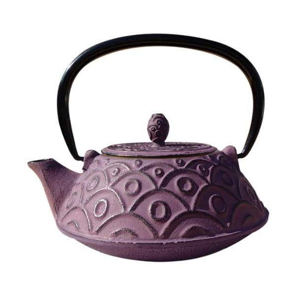 Unity cast iron “Kyoto” teapot –has a Greek wine finish. graceful, elegant cast iron tetsubin teapot crafted in the Japanese style inspired by highly prized antique Japanese cast iron teapots still in use today. features a black porcelain enamel interior coating that helps prevent rust includes a stainless steel tea brewing basket for ease of preparation for brewing and serving tea; not intended for stovetop use. 26-ounce capacity hand wash.