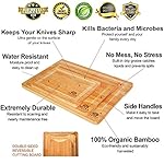 - ORGANIC BAMBOO ONLY. The cutting board is made of sturdy natural wood – there are no chemicals or BPA. Bamboo is a known liquid absorber and bacteria fighter that helps you eat healthily.