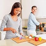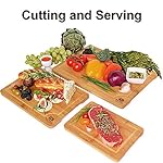 - KNIFE-FRIENDLY SURFACE. Smooth bamboo wood doesn’t dull your knives and feels easy to cut on. Also, there will be no scratches and marks on the board.