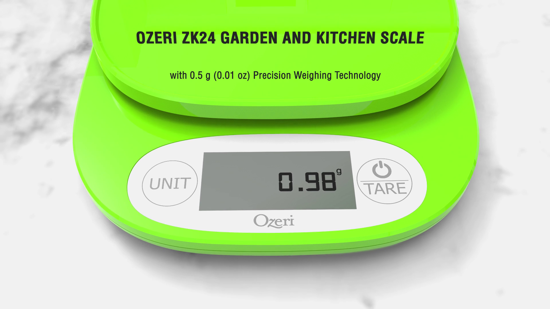 The new Ozeri ZK24 defines the latest in precision weighing technology with a 0.5 g / 0.01 oz graduation and a max weight capacity of 6000 g / 13.22 lbs to help you achieve your diet, and wellness goals. A true Garden Scale, Herb Scale, Recipe, Baking and Kitchen Scale, the Ozeri ZK24 boasts an accommodating weighing platform to weigh both small and large items with ease. The ZK24’s sensor technology delivers accuracy for the most delicate leaves, and immediate response times to keep up with the fast-paced chef. Elegantly refined and available in an assortment of refreshing colors, the ZK24 is just as handy as it is in the kitchen and garden, and doubles as a postage machine for your mail and as a great tool for science projects. An indispensable companion for the serious cook, the ZK24’s large Unit button lets you change the unit of measurement with push-button ease, with 5 different units to choose from (g, lbs, lbs:oz, oz, ml). For example, easily convert from 649.5 grams to 1.432 pounds to 1 pound 6.9 ounces to 22.91 ounces to 649.5 ml. Manufactured to Ozeri’s rigorous quality specifications, the ZK24 also features a handy Tare button which automatically subtracts the weight of any container to calculate the net weight of any garden plants or other ingredients. Both buttons are separated from the actual weighing platform, which prevents movement on the weighing platform, thereby ensuring the highest possible accuracy. The ZK24’s Tare and Unit buttons also provide a tactile click confirmation so you never have to push twice when measuring recipes in a hurry. The ZK24’s sleek aesthetic complements any kitchen decor, cleans quickly and stores easily. It features a large illuminated LCD display with an enhanced viewing angle. The ZK24 requires 3 AAA batteries (not included) and is equipped with an easy-access battery compartment. It also features a 2-minute automatic power-off to preserve battery life. Satisfaction guaranteed by Ozeri’s No-Hassle Warranty.