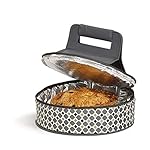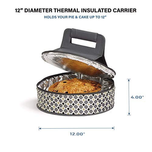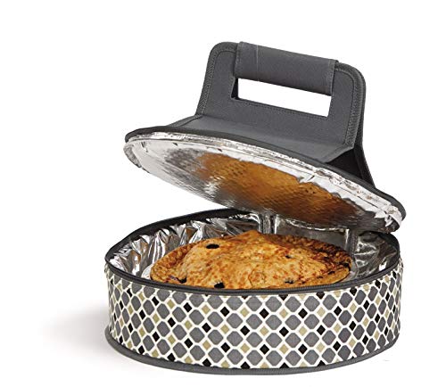 Now you can take your desserts in style, with the Picnic Plus cake carrier. The large 12″ diameter, fully thermal foil insulated carrier holds not only cakes, pies, tortes and cupcakes, but works as a round casserole carrier, quiche, dips and tray carrier.
