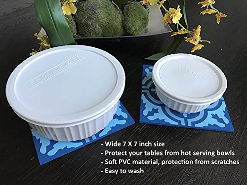 Truly unique high quality soft PVC trivet set (2 trivets), Authentic Moroccan Tile design. Scratch free. Protect your tables from warm, hot, or cold pots and pans while showcasing piece of art that can be a conversation starter with your guests.