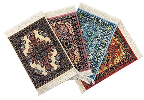 Set of 4 Rug Table Coasters | Oriental Design Fabric Carpet Drink Mats (Mix-2)