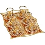 Turkish Tea Glasses Set of 6. Handmade in Turkey. Color : Gold. Capacity : 3.3 Oz.
