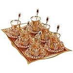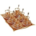25 Pieces.1 TRAY, 6 Glasses, 6 Glass Holders, 6 Saucers, 6 Spoons (Spoon color & design may vary).