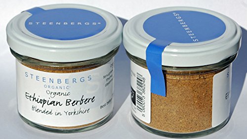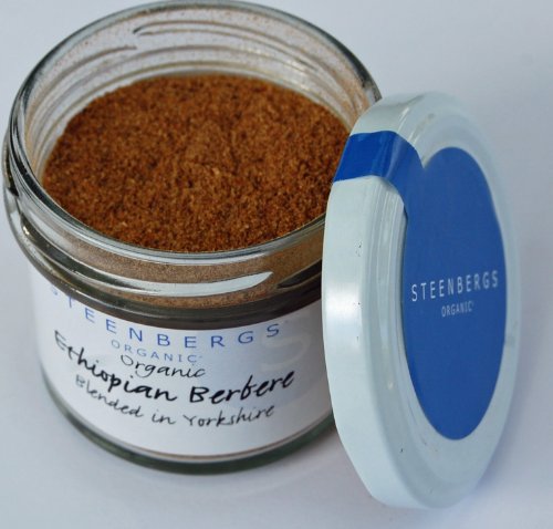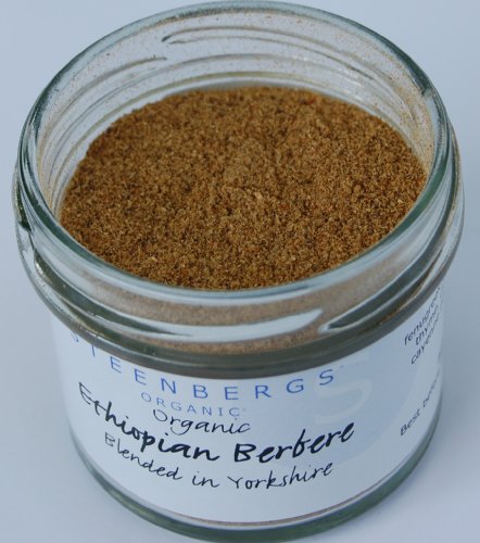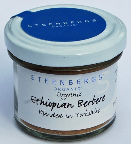 Steenbergs Organic Berbere is the highly regarded, curry-style spice mix utilized in Ethiopian cooking. Steenbergs Organic Berbere Spice Mix has a coarse earthy texture with a pungent flavour – given some fragrance by organic thyme , organic cumin and organic allspice – and quite a few spicy, red hot chilli heat. Traditionally, you could use long pepper for the peppery spice notes, but (as organic long pepper has intermittent supply) Steenbergs Organic Ethiopian Berbere uses organic black pepper powder. You’ll be able to use Steenbergs Organic Ethiopian Berbere either as a dry paste or mix with a little bit water to make into a curry paste. As with every Steenbergs artisan spice blends this organic Ethiopian Berbere has been created and blended on the Steenbergs spice factory in rural North Yorkshire, just north of the cathedral city of Ripon. Steenbergs specialises in organic and rather traded spices Spice ingredients in Steenbergs Organic Ethiopian Berbere – organic ground cumin powder , organic coriander seed powder , organic ground fenugreek powder , organic ginger powder , organic thyme herb , organic ground clove powder , organic ground nutmeg powder , organic cayenne pepper ( chilli ), organic ground allspice ( pimenta )