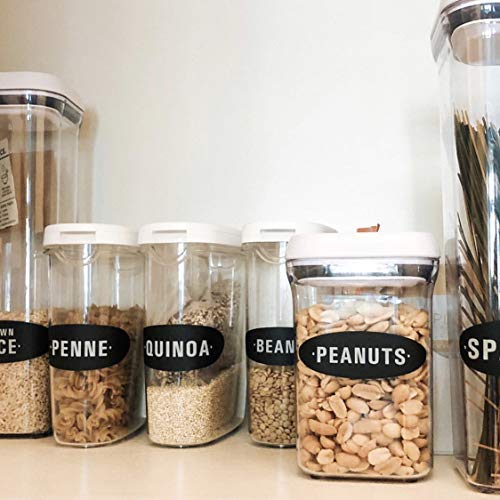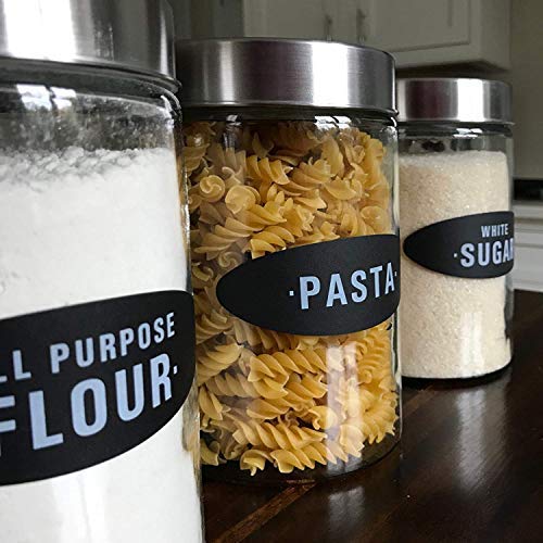 158 KITCHEN LABELS INGREDIENTS and MORE: 158 labels with the ingredients found in every kitchen in America! From All Purpose Flour to Coffee, to Cereal or Pasta. Every name you can think of is probably included! Set includes blank labels so you can write your own with a chalk marker or sharpie