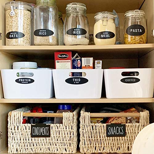PANTRY LABELS STICKERS PREPRINTED, PANTRY ORGANIZATION MADE SIMPLE: Mega set of labels includes 158 chalkboard labels. These are solid decals (no rubbing required) printed on black chalkboard matte sticker material.