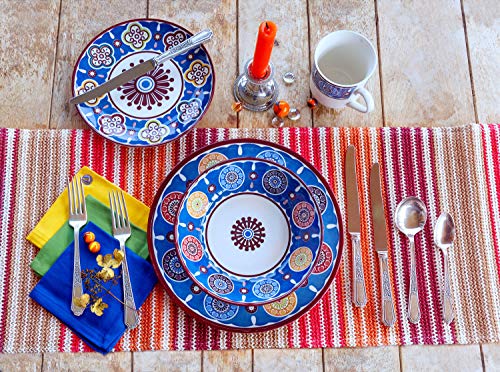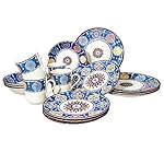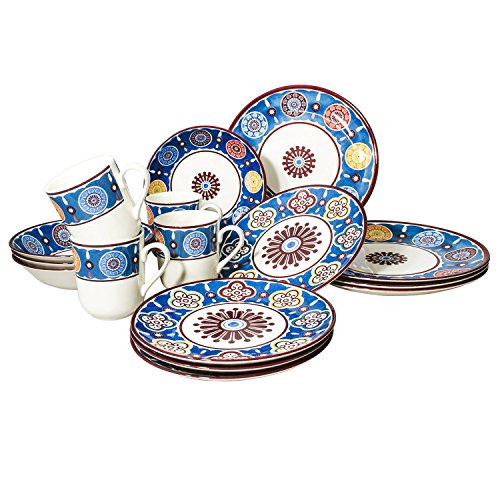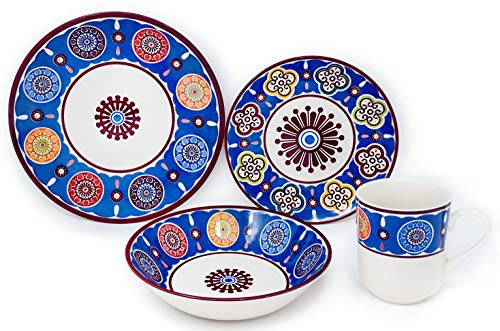 UNIQUE DESIGNS: 16-piece round porcelain dinnerware set for 4. Includes 4 of each: 10.2-inch dinner plate, 8.1-inch salad plate, 8-inch soup pasta bowl, 12 oz mug