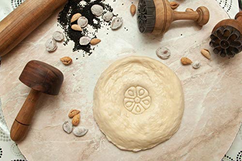 Each Uzbek bread stamp for sale is made of walnut wood with iron pins arranged into floral patterns. It is used to emboss various designs at the centre of circular flat bread.