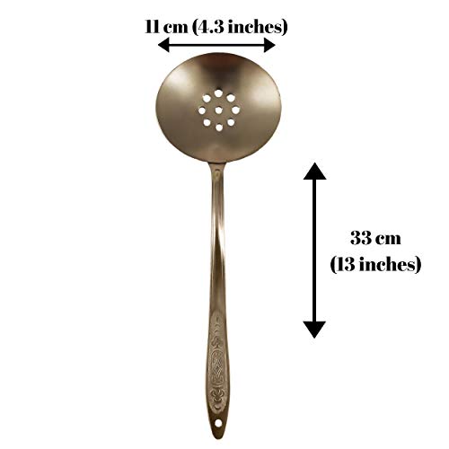 - Traditional Uzbek skimmer famously used to cook pilaf (plov, pilau) and other popular Uzbek foods (learn about them in the recipe ebooks that come as a bonus to your purchase).