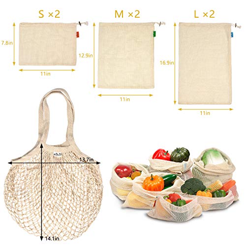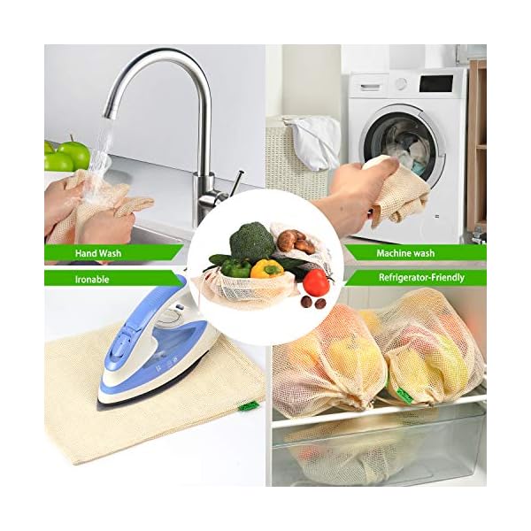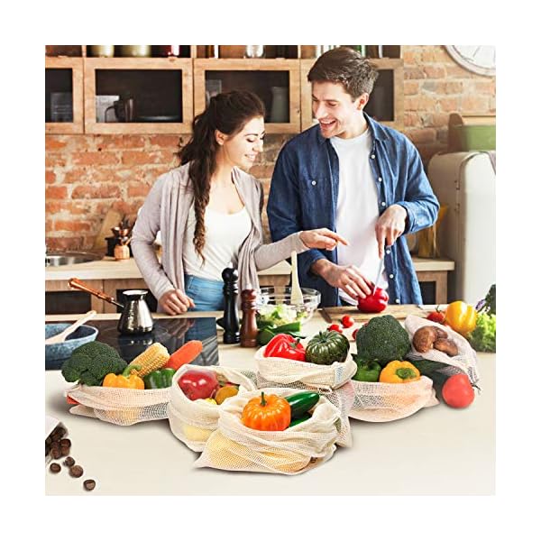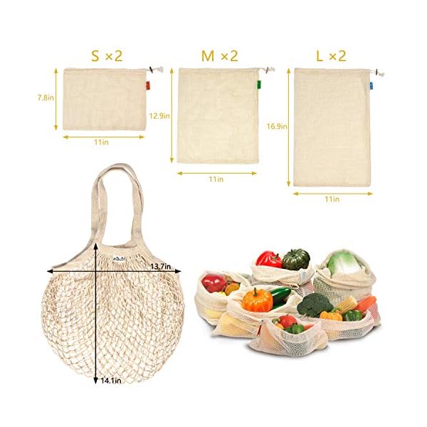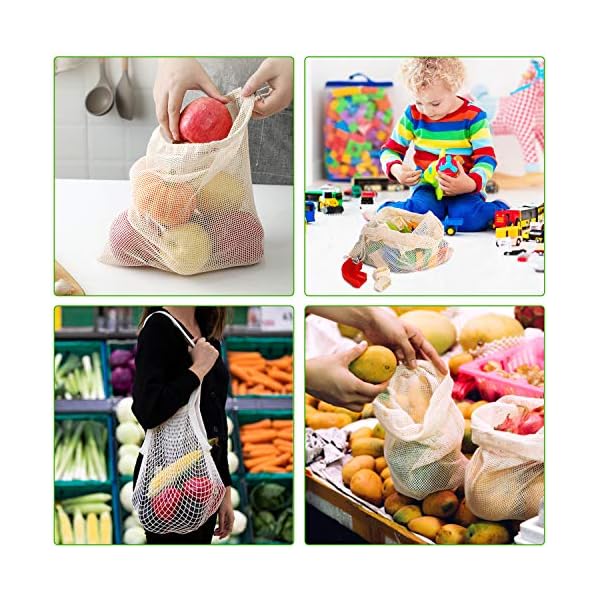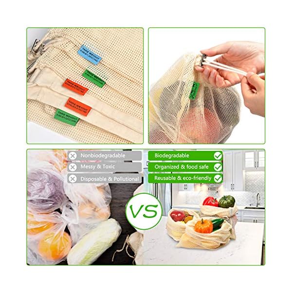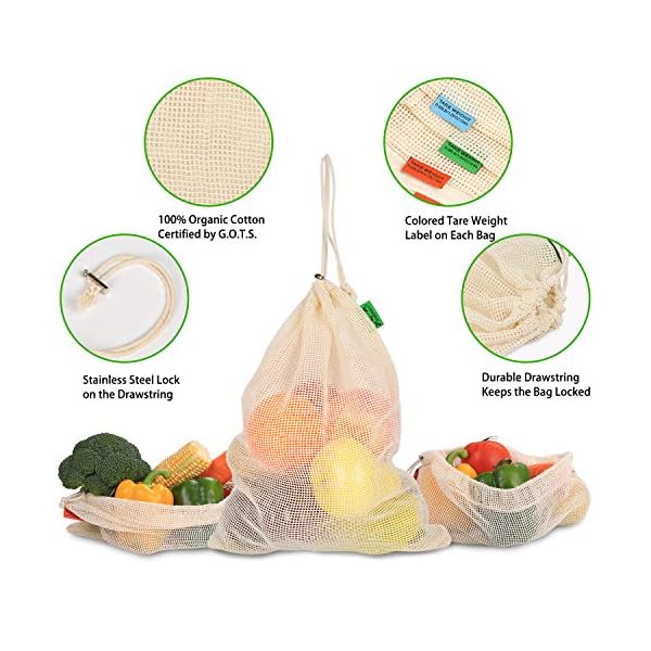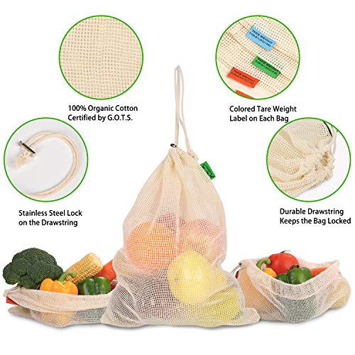 Environmentally friendly and reusable: 100% organic cotton, our vegetable and fruit mesh bags are GOTS certified, non-toxic, harmless, unbleached and free from any chemical or plastic component