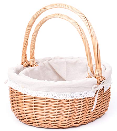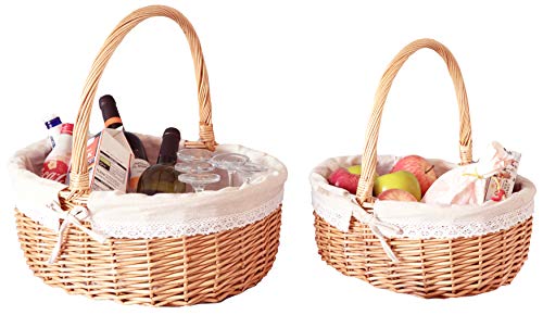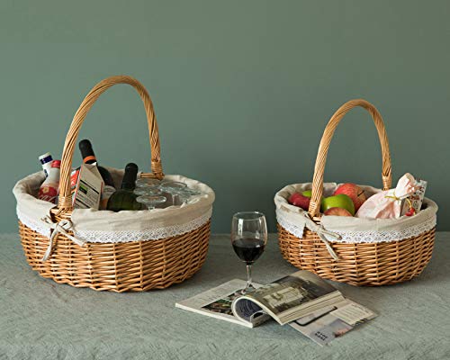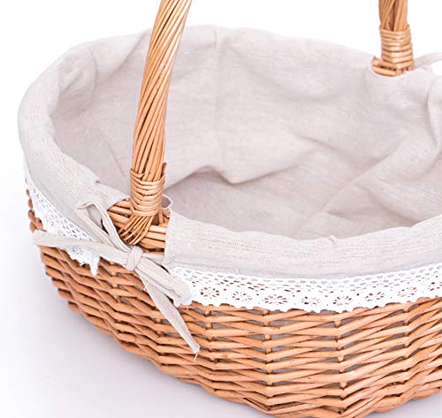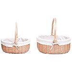 Vintiquewise QI003688.2 Willow Oval Shaped Bread Basket with Decorative Fabric Liner, Set of 2, Brown
