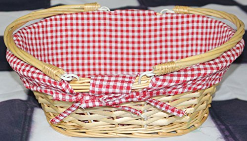 Add some natural style to the home with this willow baskets with fabric lining. These beautiful baskets are made of wicker, basket is lined with a cloth material.
