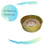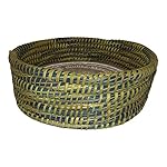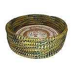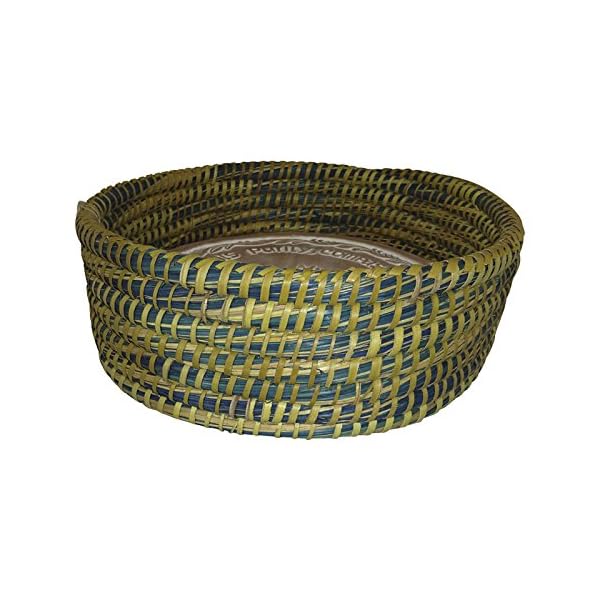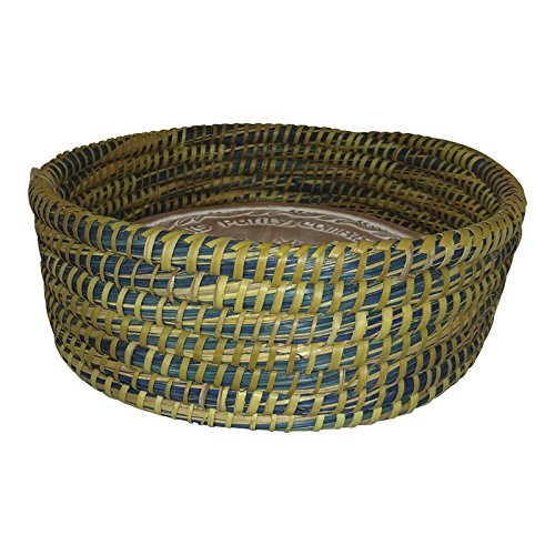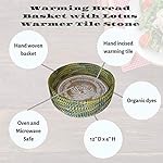 Handwoven kaisa grass bread basket with palm wrap and terracotta warming tile.