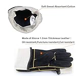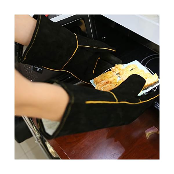 - Premium Leather: Full cow split leather surface(which made from carefully selected high-quality cow leather with thickness depth above 1.2mm) for long time durability and heat & fire resistant. Cowhide leather back till the cuff and soft cotton lining; High quality stitching for extremely heat and fire resistant.