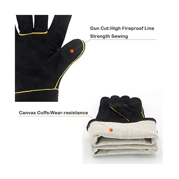 - Comfortable and Flexible Design: Super soft and exclusive cotton lining for excellent performance of heat resistance, fire retardant, operation flexibility and sweat absorption. Canvas Cuffs which is Wear-resistance and durable.