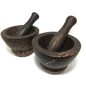 2 Mini Wooden Mortar Pestle Spice Grinding...