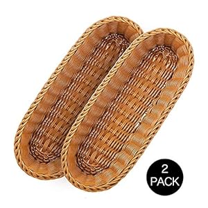 2 Set 14.5″ Poly-Wicker Bread Basket,...